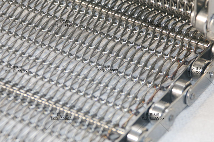 滾筒驅動運轉的輸送帶,是靠摩擦力進行輸送。常規運用于高載重,低速度的需求中。例如熱處理爐使用的耐熱輸送帶,大多就是這樣的驅動方式。 鏈條不銹鋼輸送帶傳動平穩、傳動力矩較小。標準鏈條傳動,走行過程中平穩,沒有跑偏現象,載重能力與抗拉力都很強。鏈條式不銹鋼輸送帶的成本造價要高于滾筒驅動的金屬輸送帶。并且噪音略大于滾筒驅動的不銹鋼輸送帶。 鏈條式不銹鋼輸送帶 鐵板鏈條傳送帶這是兩組同樣運用于薄百葉晾涼設備上的金屬輸送帶。這兩種不銹鋼輸送帶同樣能達到輸送的目的。